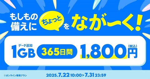携帯電話サービス「povo2.0」にてお試しトッピング「データ追加1GB(365日間···