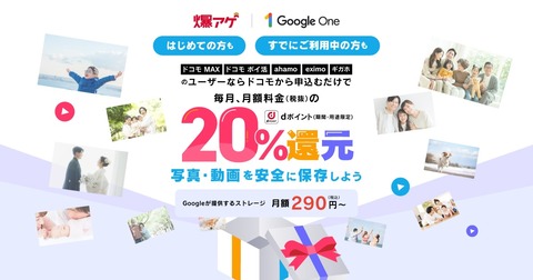 NTTドコモがクラウドストレージサービス「Google One」の取り扱いを開始!爆···